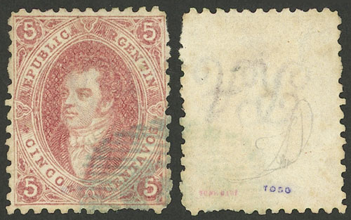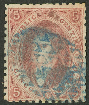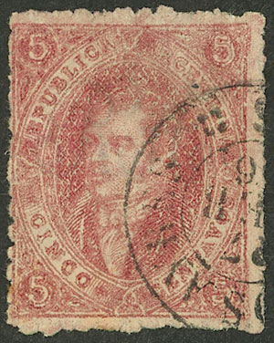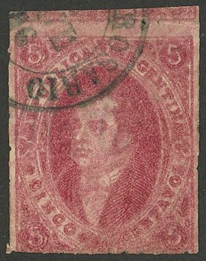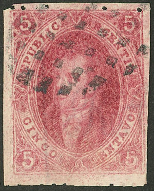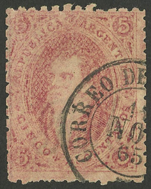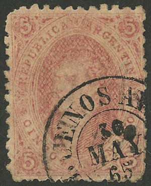 4th printing, in rare VIOLET-ROSE color, used in B.Aires on 27/FE/1866, very fine quality, very scarce! (Image)