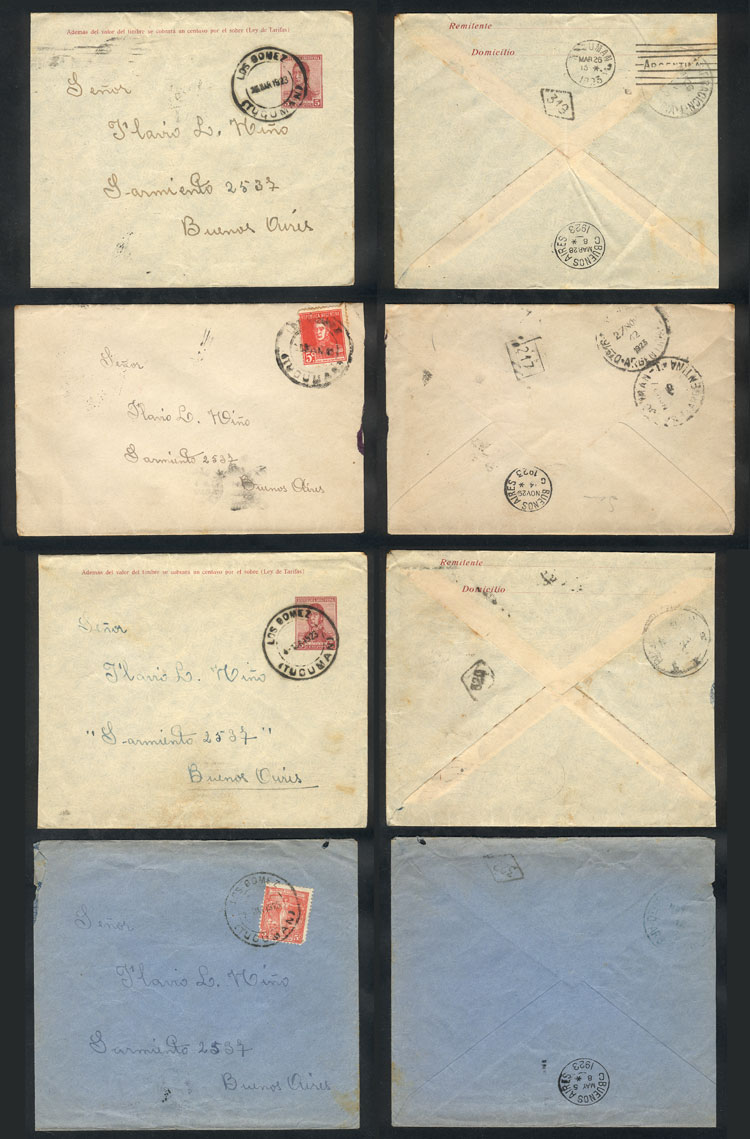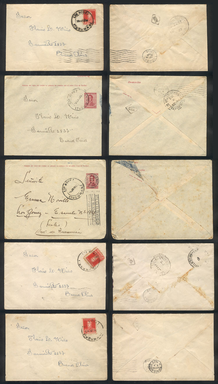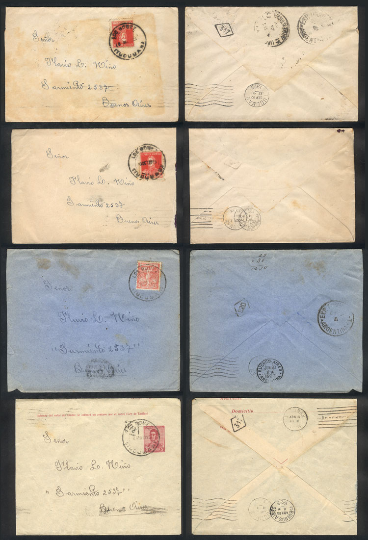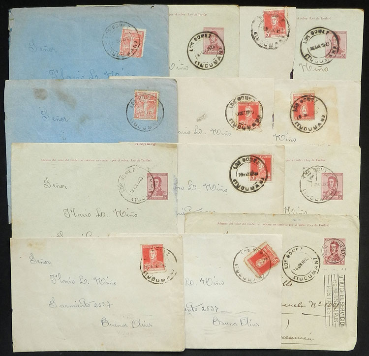 Rare cancel LOS GOMEZ (Tucumán): 13 Covers sent to Buenos Aires in 1920s, all with the very rare cancel of LOS GOMEZ, some also bear on back nice railway cancels, VF general quality! (Image) (Image-02)
