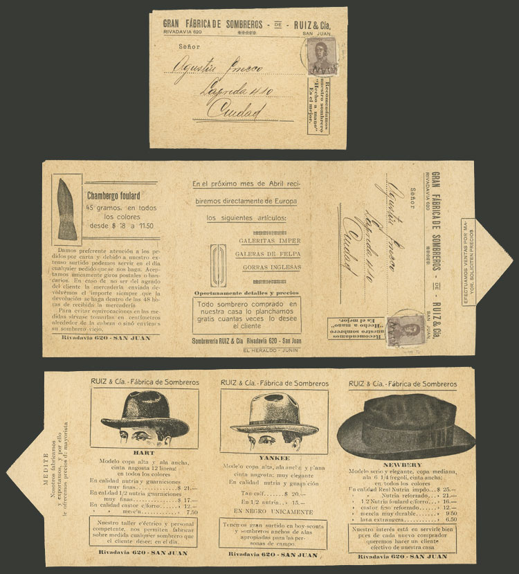 1917, fantastic advertising for a HAT FACTORY used in San Juan franked with 2c., excellent! (Image)