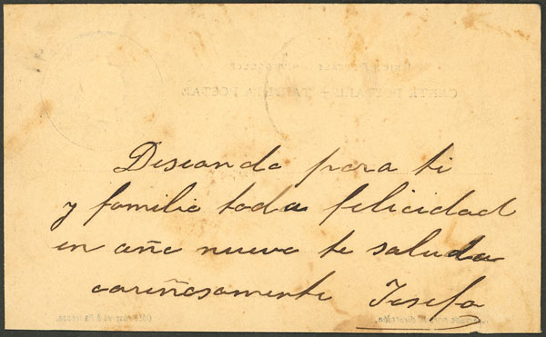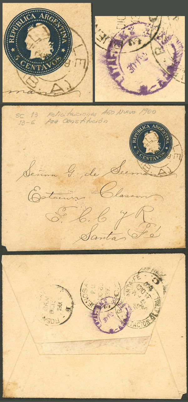 Lettersheet with New Year greetings sent from DEL VALLE (Buenos Aires) to Estación Classon (Santa Fe) on 30/DE/1900, with several transit marks on back including one in violet of TRAVELING PO, very interesting! (Image)