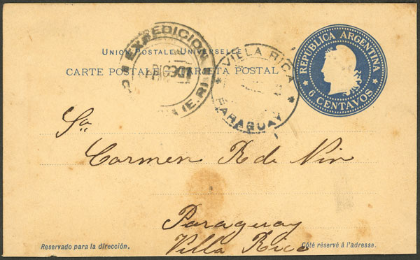 6c. Liberty Head postal card (GJ.TAR-26) sent from Concordia to VILLA RICA in Paraguay in DE/1901, with arrival mark on front, rare! (Image) (Image-02)