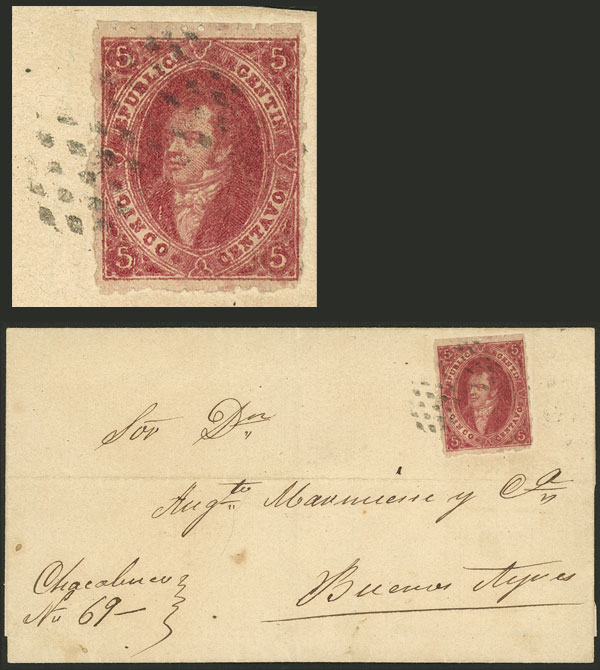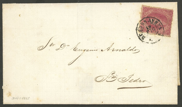 4th printing, franking a folded cover from Buenos Aires to San Pedro on 24/DE/1865, superb! (Image)