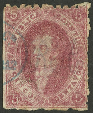 5th printing, with rimless datestamp of Concepción del Uruguay in blue, superb! (Image)