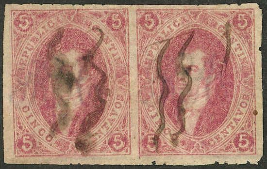 4th printing, beautiful pair in violet-rose, with pen cancel of Mburucuyá, superb! (Image)