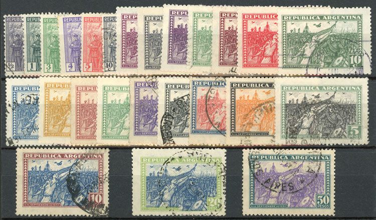 GJ.736/765, 1935 Proceres & Southern riches 1c. to 20P. printed on imported unsurfaced papers, the set almost complete (of some stamps we include more than one paper (normally English, there can be some on Dutch or Austrian papers),