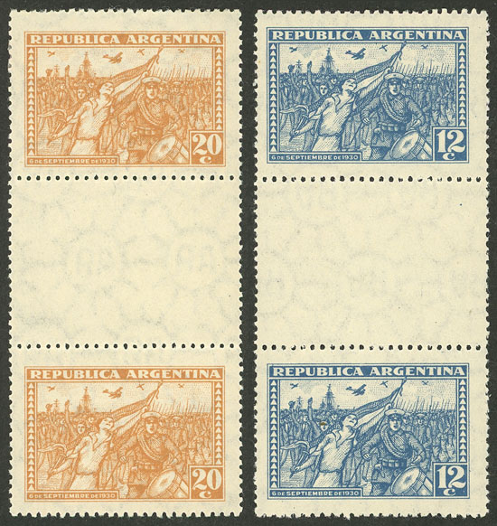 + 684EH, 1930 Revolution 12c. and 20c., vertical GUTTER pairs, VF quality! (Image)