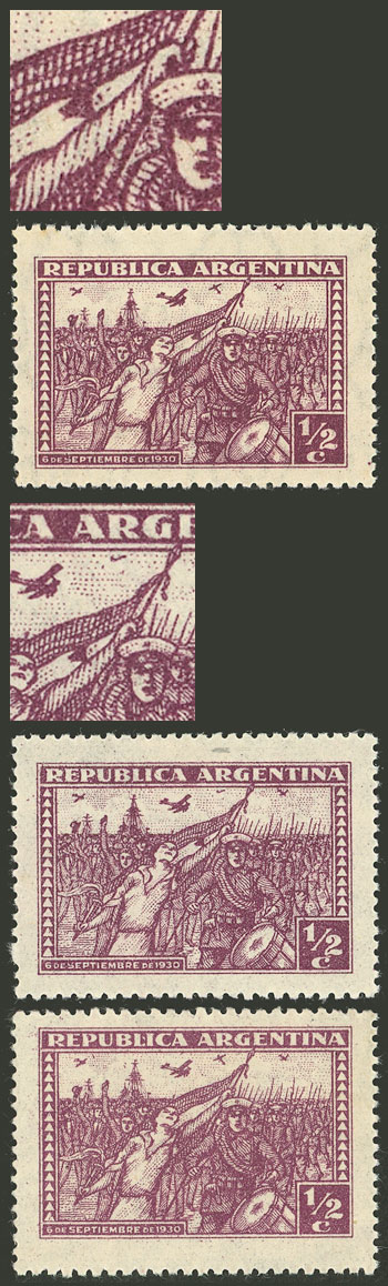 + 676b + 676c, 1930 ½c. Revolution with varieties: "Flag with sun", "flag with sun and third airplane incomplete", and "invisible watermark", VF! (Image)