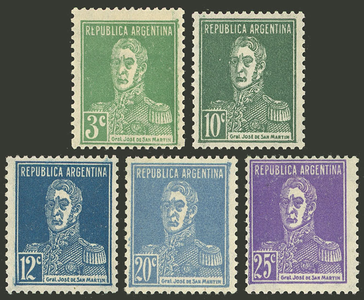 710/713, 1931 San Martín typographed, 5 values of the set of 7, VF quality! (Image)
