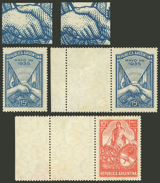 + 734a + 734aCZ, 1935 Visit of the president of Brazil, the 2 values with labels (the 15c. with variety "6 fingers") + single with the same variety. (Image)