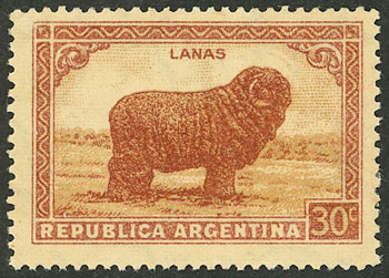 GJ.757SG, 30c. Wool (sheep) with variety PRINTED ON GUM, VF quality! (Image)
