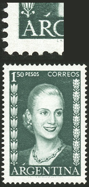 GJ.1030A, 1954 Eva Perón printed on imported unsurfaced paper, MNH, VF quality! (Image)