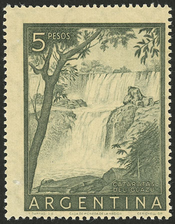 GJ.1053ASG, 5P. Iguazú falls, PRINTED ON GUM, very fine quality! (Image)
