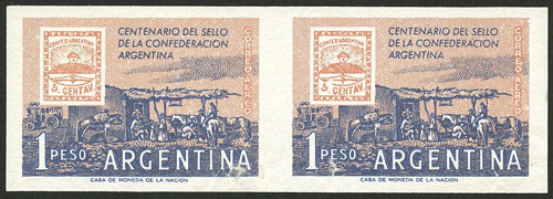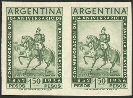 GJ.1062P, 1956 Battle of Caseros, IMPERFORATE PAIR, MNH, superb! (Image)
