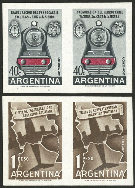 GJ.1102P/1103P, 1958 Friendship with Bolivia, the set of 2 IMPERFORATE PAIRS, MNH, excellent quality! (Image)