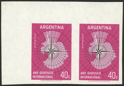 GJ.1108P, 1958 Map of Antarctica, IMPERFORATE PAIR, MNH, VF quality! (Image)