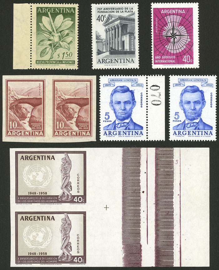 + 1095A + 1214a + 1221A + 1267b + 1274a + 1325a + 1337A + 1338A + 1712A, paper varieties or errors, almost all MNH, very fine general quality, catalog value US$77, low start!