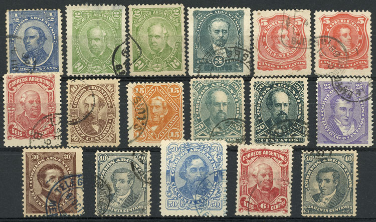 other values, "Sudamericana" issue, 13 different stamps, all with MUESTRA overprint, including GJ.115MU, 116MU and 119MU, VF quality! (Image)