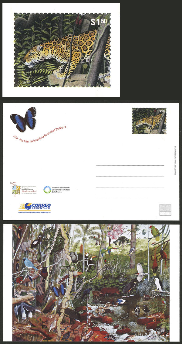GJ.TAR-210a, 2010 Biodiversity (fauna, animals, plants) with variety "SILVER COLOR OMITTED" (without REPUBLICA ARGENTINA" inscription), excellent and very rare!