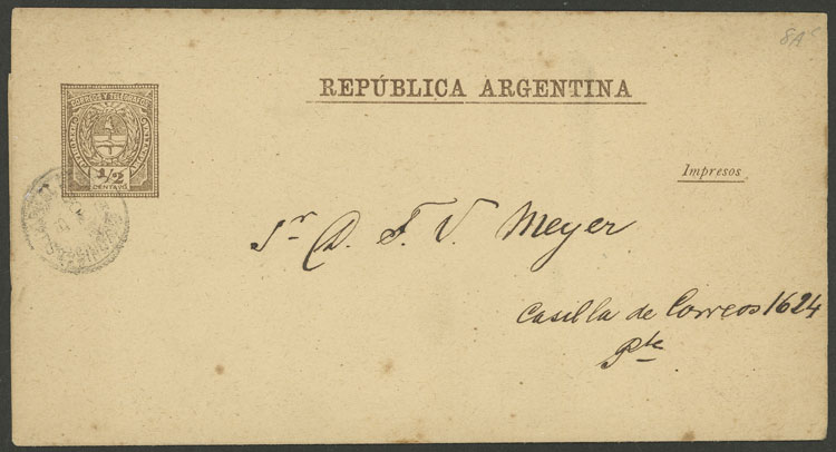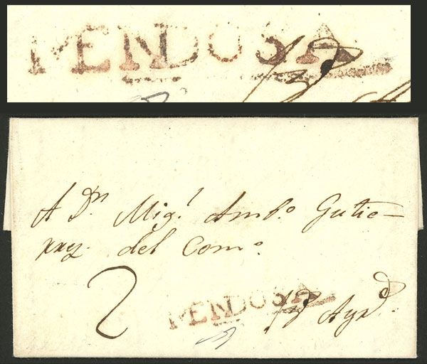 of the Postal Administration of the State of Buenos Aires for 2 official documents sent from San Isidro, with the hand-written signature of General Postmaster Gervasio de Posadas, excellent quality, rare! (Image)