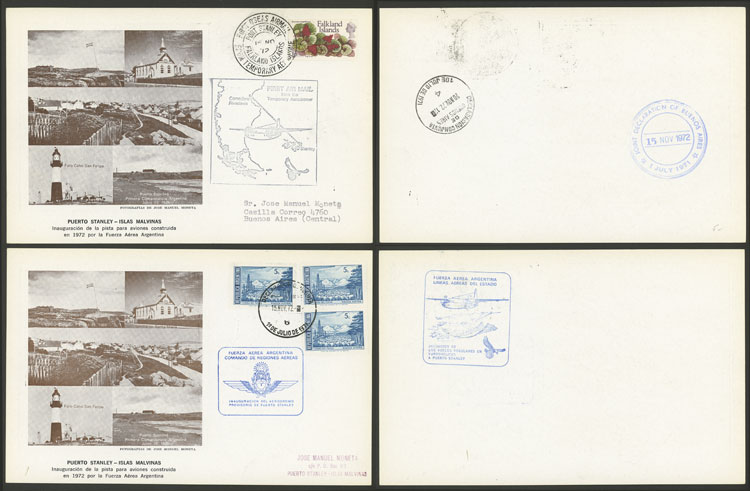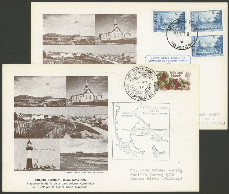 15/NO/1972 C.Rivadavia - Port Stanley (Falkland I./Malvinas)- C.Rivadavia, LADE special flight commemorating the inauguration of the runway built by the Air Force, 2 cards (with postage corresponding to roundtrip), VF quality! (Image) (Image-02)