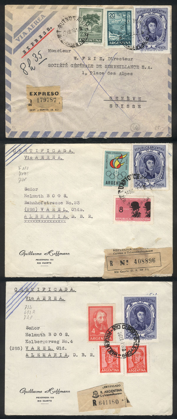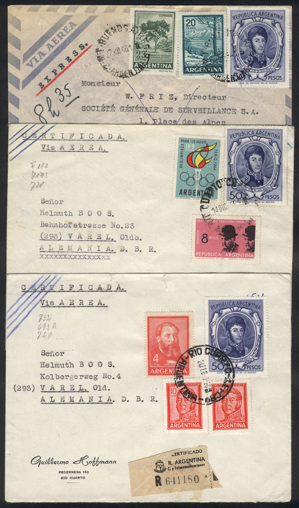 Airmail covers sent to Germany and Switzerland between 1965 and 1967 with very good postages including the 50P. San Martín large size, VF group! (Image) (Image-02)