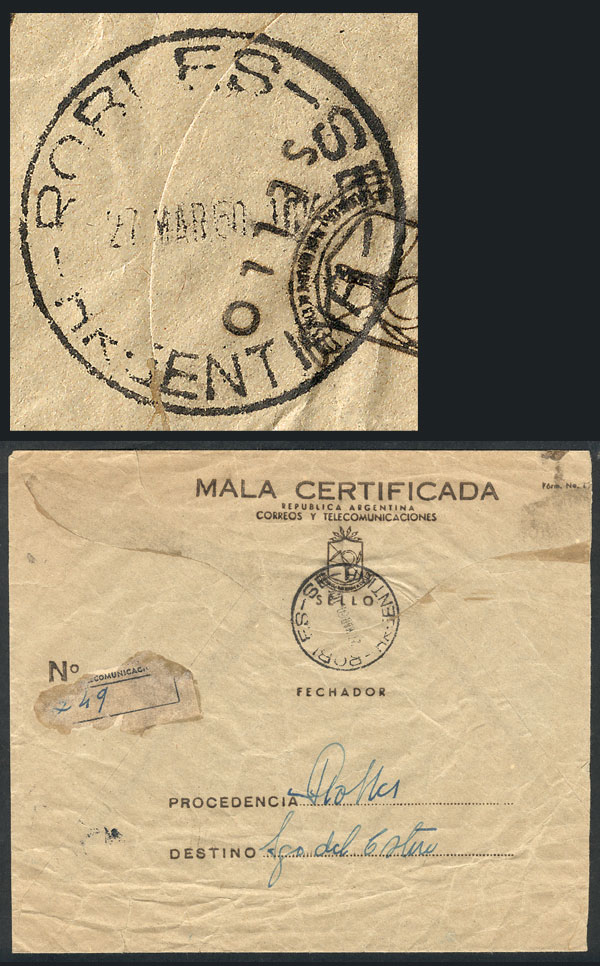 Certificada" sent to Santiago del Estero on 21/MAR/1960, with datestamp of ROBLES (S.E.), VF and rare! (Image)