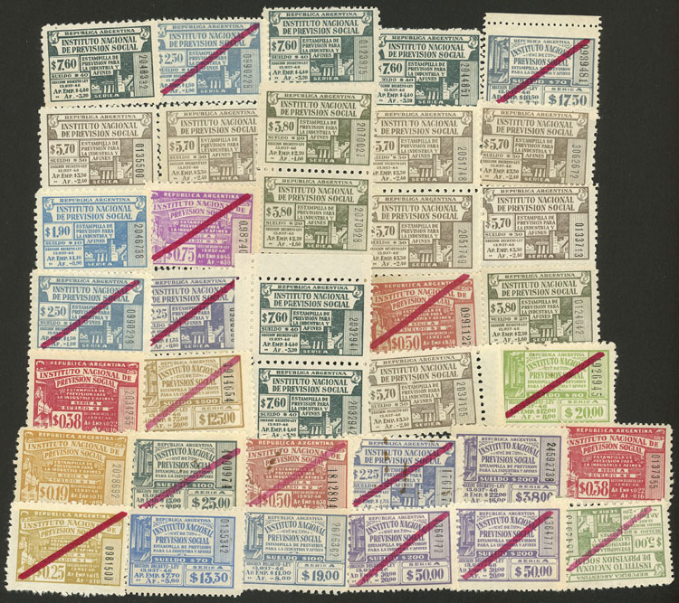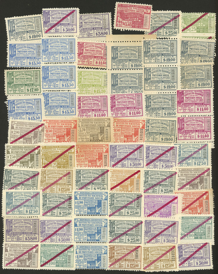 Envelope containing over 150 revenue stamps of Previsión Social, MNH, in general of very fine quality, little duplication, rare lot! (Image) (Image-02)