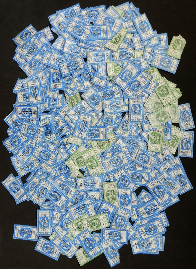 CIGARETTES: Lot of severals hundreds revenue stamps (approximately 500!) to pay domestic taxes for cigarettes, many sets and varied values, VF quality, rare group!