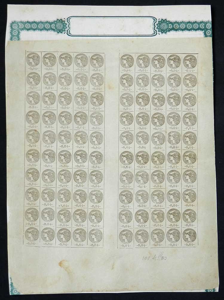 1895, 4c., complete sheet of 100 examples, excellent quality, very rare! (Image)