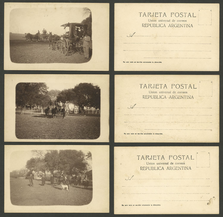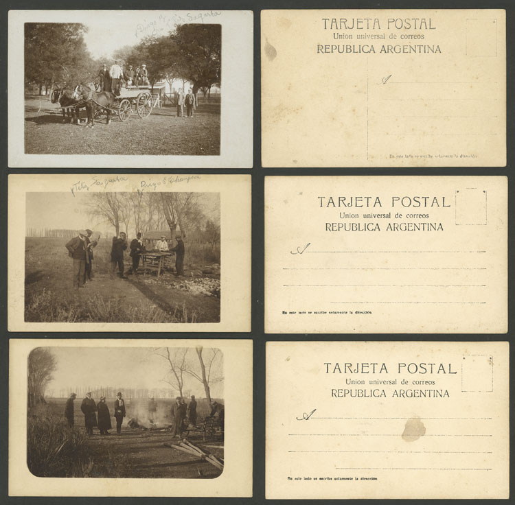 ESTANCIA IN ARGENTINA (possibly in province of Buenos Aires): 6 very old real photo PCs with spectacular views, rare group of very fine quality. Some cards have inscriptions with names of the people in the photo (Diego y Feliz Sagasta,
