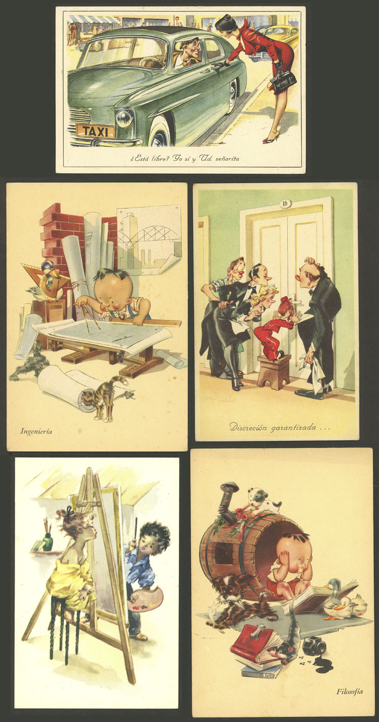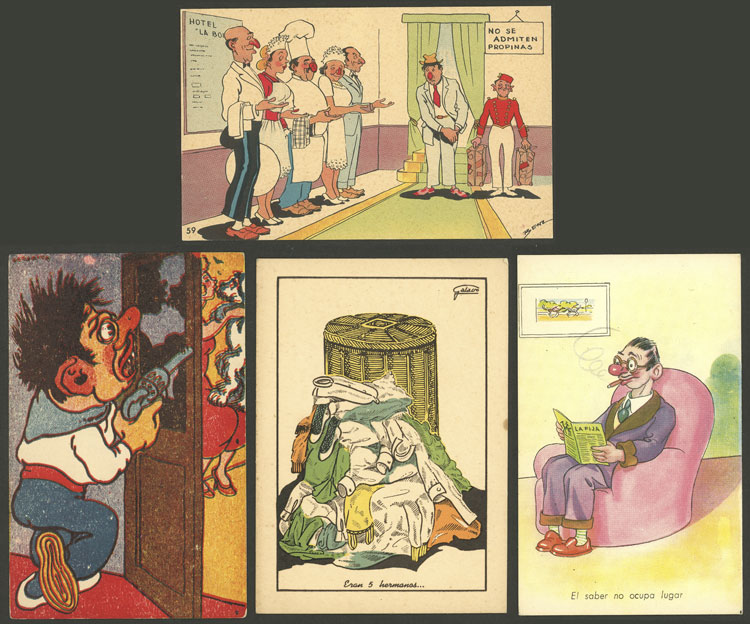 COMIC, CARICATURES: 19 Old postcards, fantastic, very fine general quality, low start! IMPORTANT: Please view ALL the photos of the lot, because all the cards have been scanned. (Image) (Image-02)