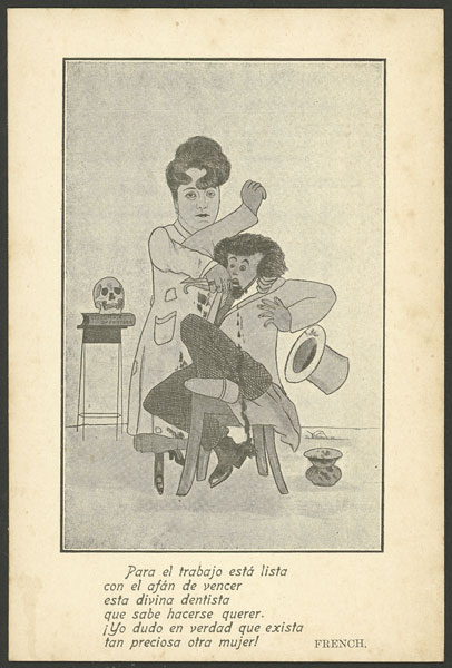 FEMALE DENTIST: old comic postcard, excellent. (Image)
