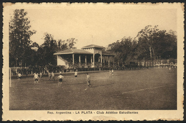 PC (circa 1920) with view of a FOOTBALL MATCH of Estudiantes de La Plata, VF quality, rare! (Image) (Image-02)
