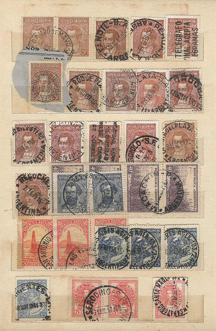 POSTMARKS OF ENTRE RÍOS: Interesting lot of old fragments with scarce cancels of the province of Entre Ríos, for example: Urdinarraín, Estación Palavecino, Boca Ñancay, Rosario del Tala, Escriña, Macia, Villa Mantero, Médanos, Rocamora, General