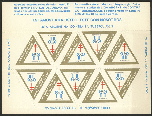 cinderella of the Argentina League of fight against Tuberculosis, year 1978 (logo of the 1978 Argentina Football World Cup), sheet of 10 labels, MNH, very fine quality!