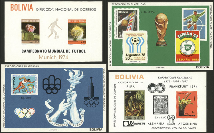 BOLIVIA: about 20 MNH souvenir sheets, almost all related to topic football, very high market value, low start! NOTE: Please view ALL the photos of the lot, all the material has been scanned. (Image) (Image-02)
