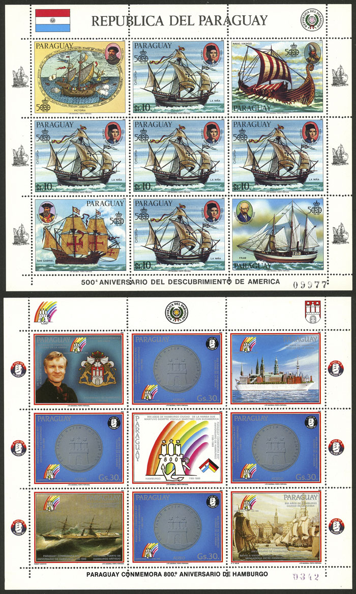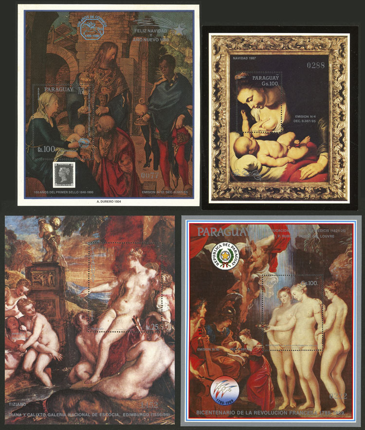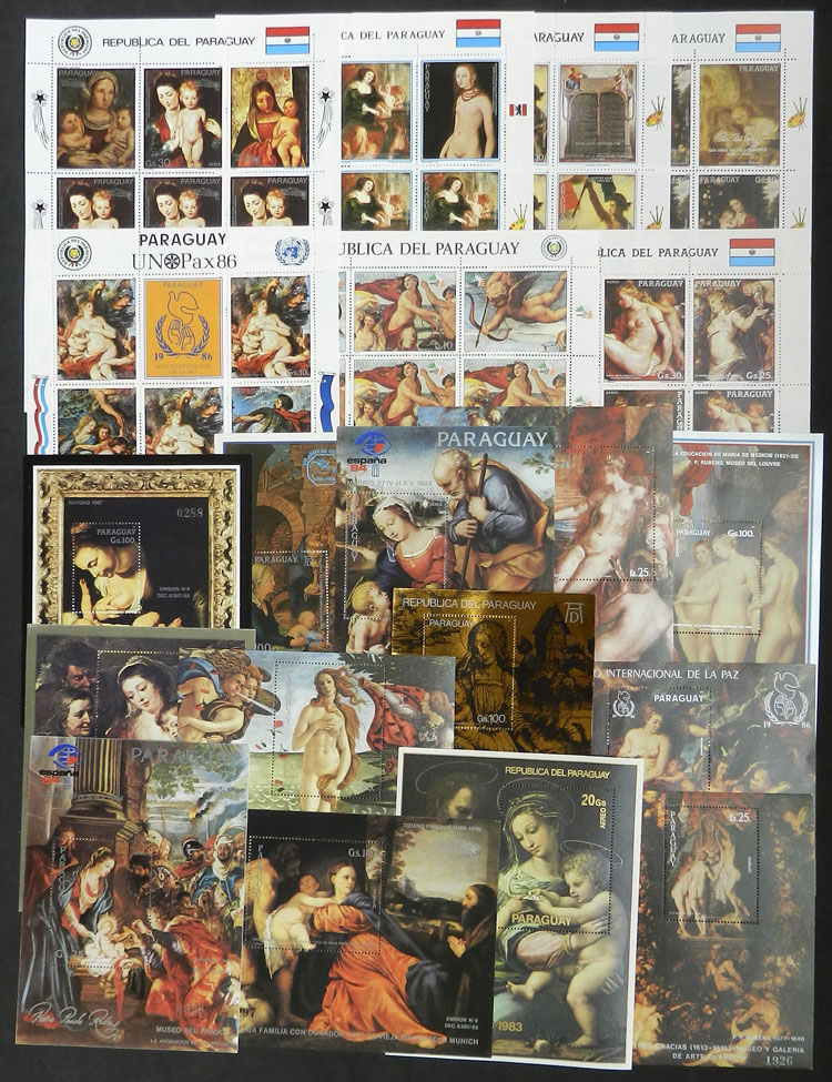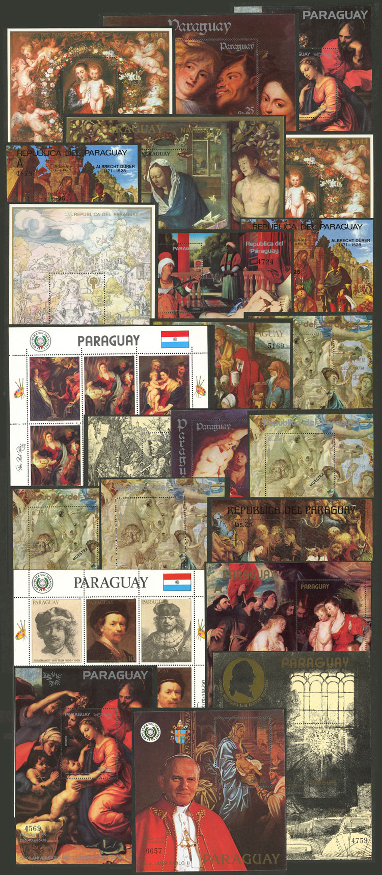 PARAGUAY: 20 Souvenir sheets and mini-sheets, very attractive, also some stamps and sets, all MNH and of very fine general quality. The s.sheets are all different, some are similar but with different gum (bright or "tropical"), or