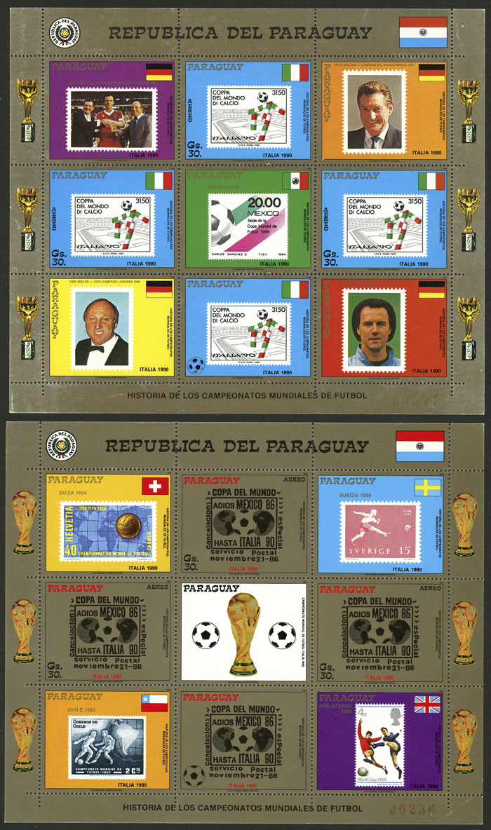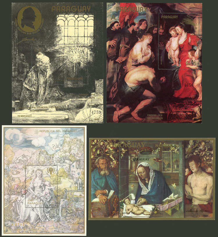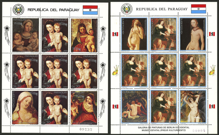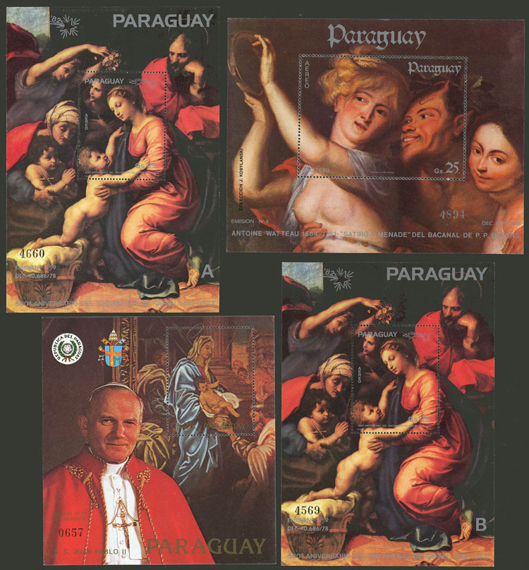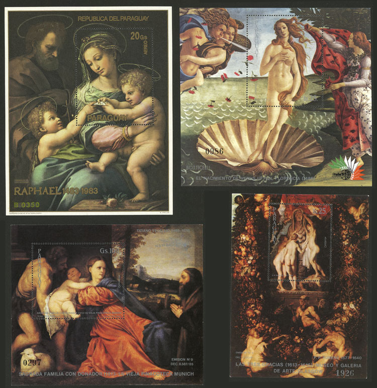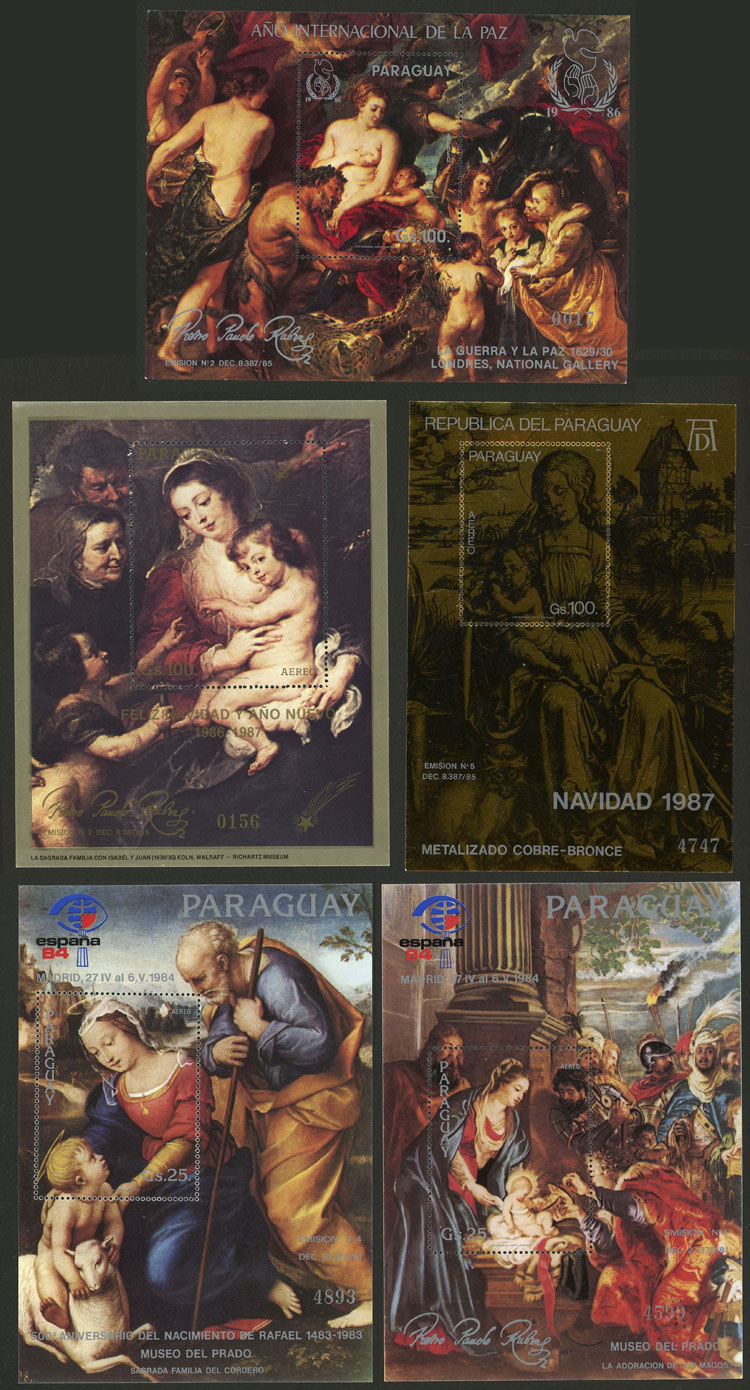 PARAGUAY: 20 Souvenir sheets and mini-sheets, very attractive, also some stamps and sets, all MNH and of very fine general quality. The s.sheets are all different, some are similar but with different gum (bright or "tropical"), or