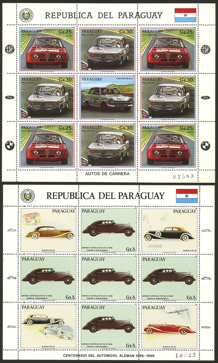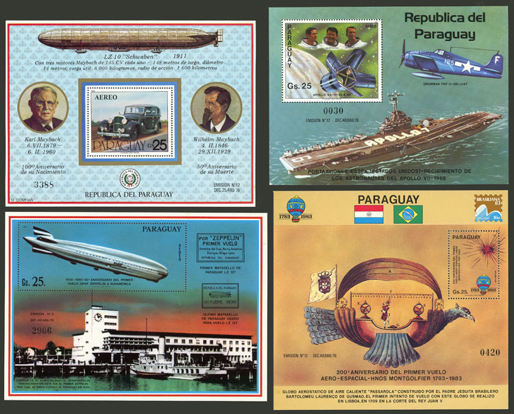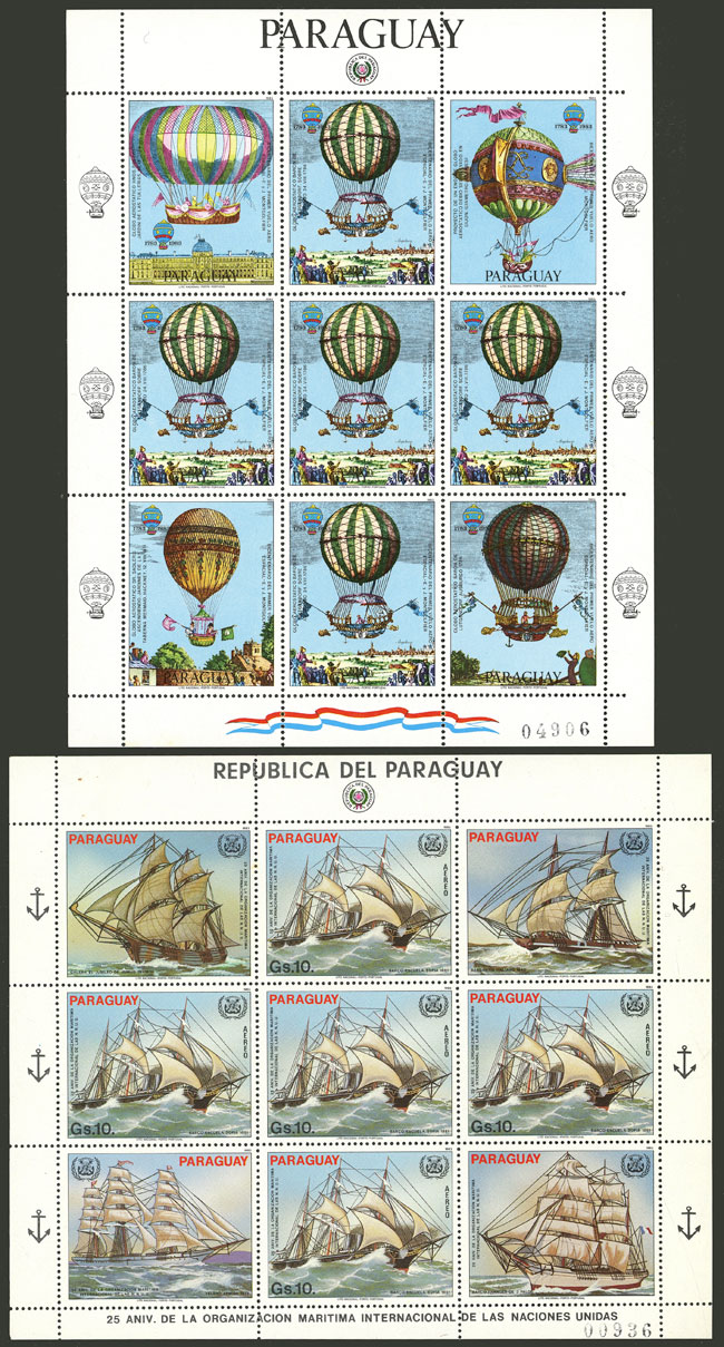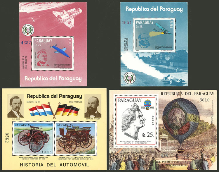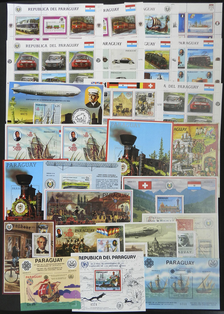 PARAGUAY: 26 Souvenir sheets and mini-sheets, very attractive (some with MUESTRA overprint), all MNH and of very fine general quality, it includes ships, trains, cars, Zeppelin, etc. The s.sheets are all different, some are similar but