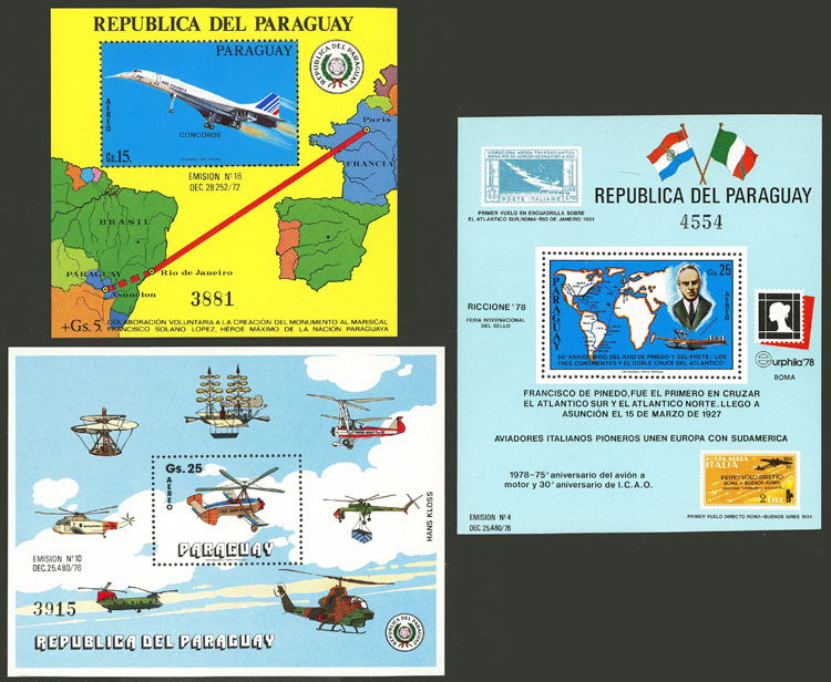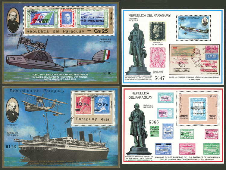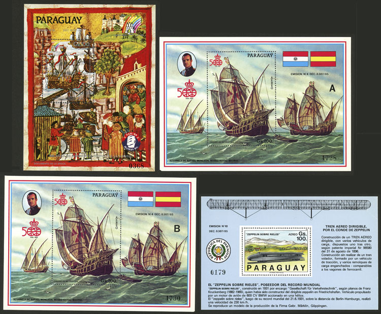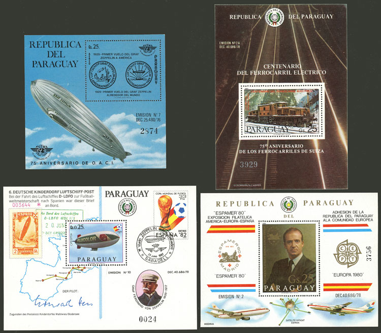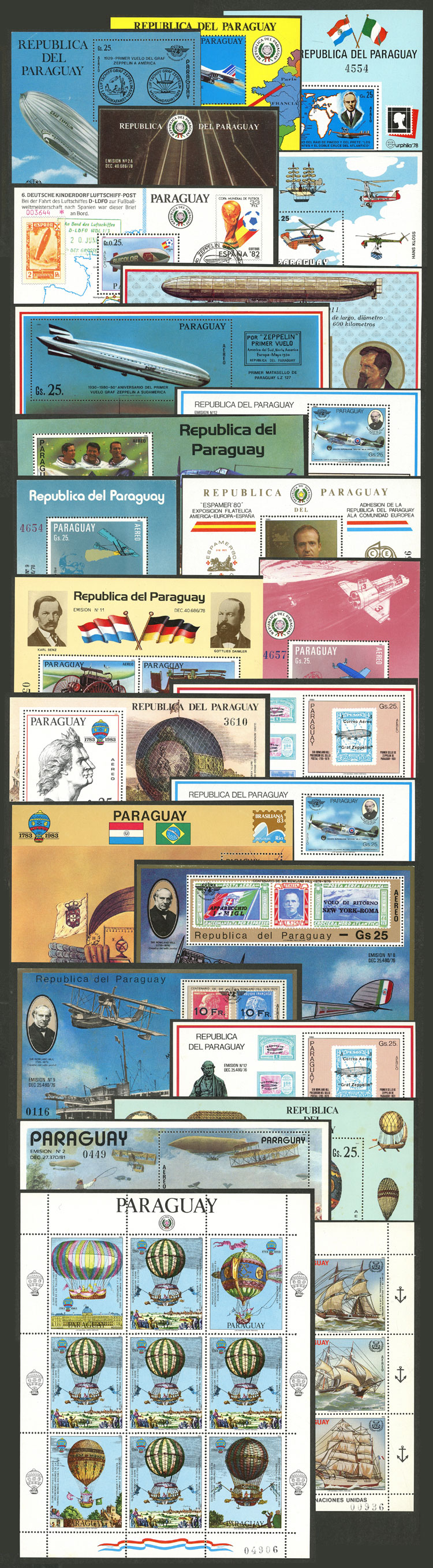 PARAGUAY: 23 Souvenir sheets and mini-sheets, very attractive (some with MUESTRA overprint), all MNH and of very fine general quality, it includes ships, trains, cars, Zeppelin, etc. The s.sheets are all different, some are similar but