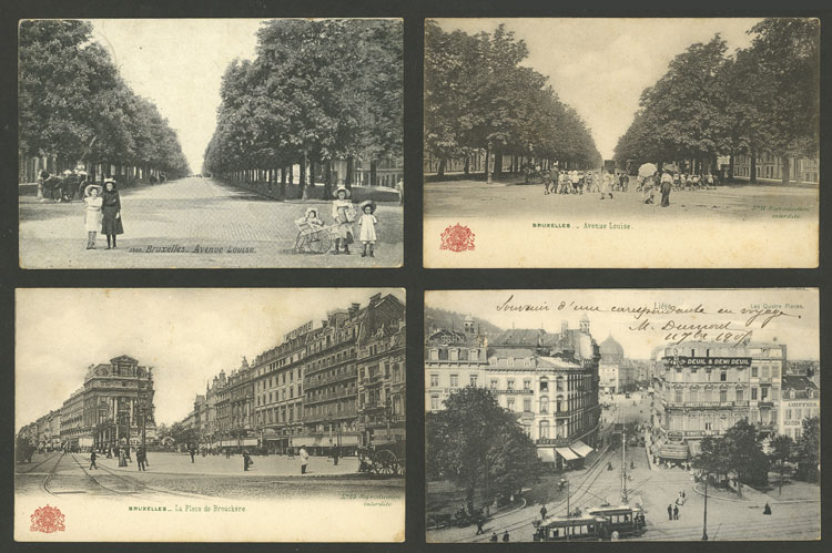 BRUXELLES: 55 Old postcards with very nice views, most sent to Argentina, fine to VF general quality. ATTENTION: Please view all the photos of the lot, because all the cards have been scanned (both sides). (Image) (Image-02)