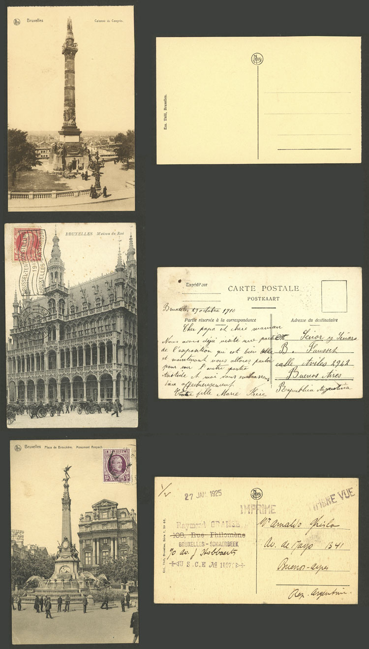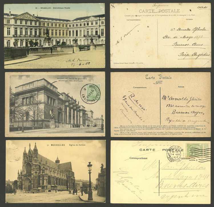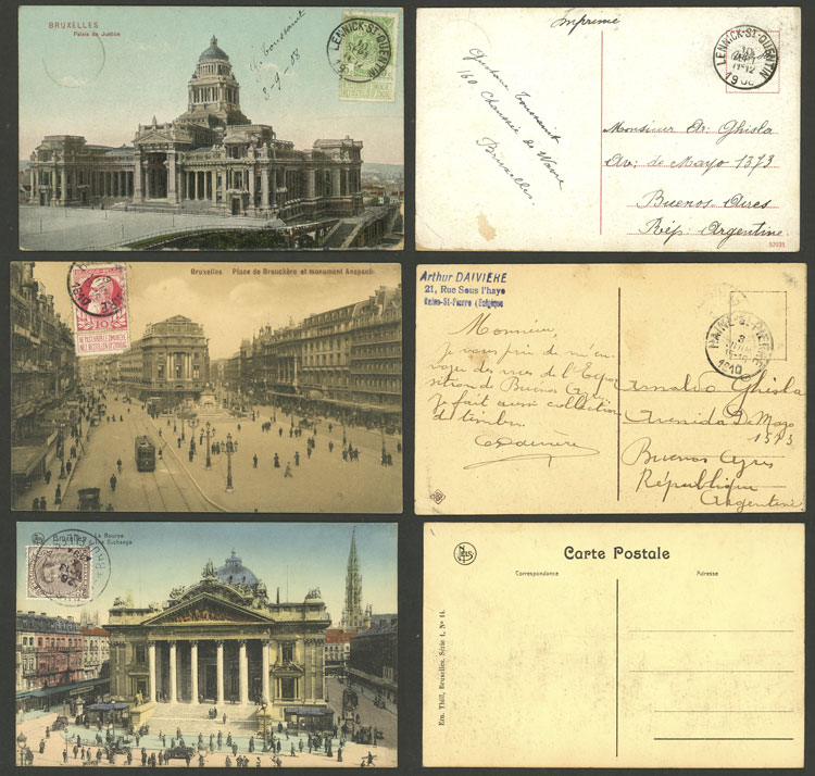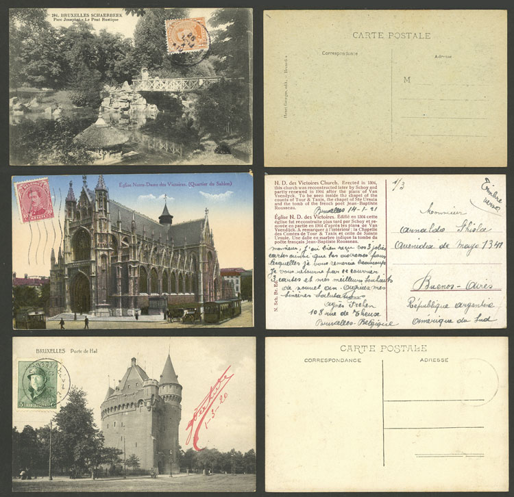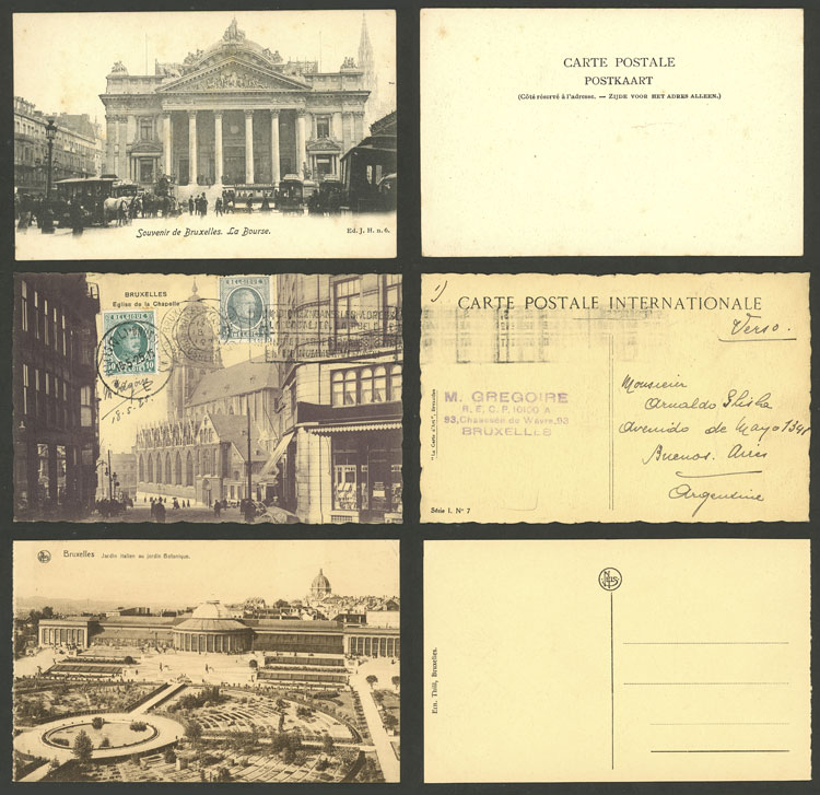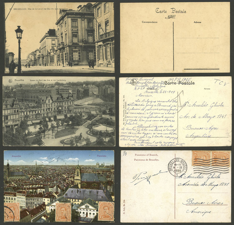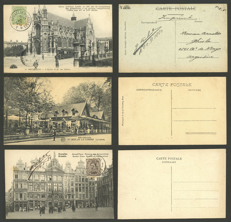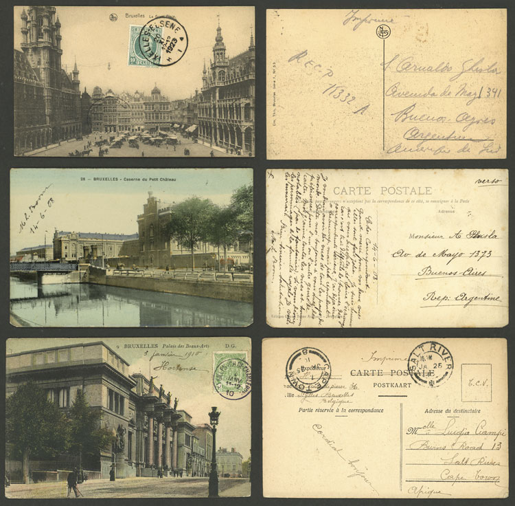 BRUXELLES: 18 Old postcards (ONE DOUBLE) with very nice views, most sent to Argentina, fine to VF general quality. ATTENTION: Please view all the photos of the lot, because all the cards have been scanned (both sides). (Image) (Image-02)