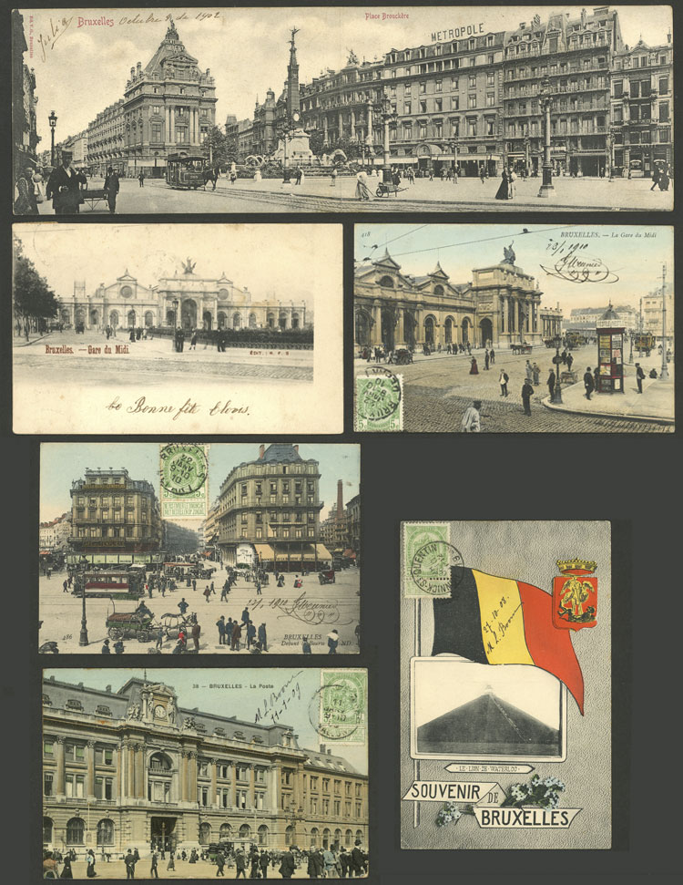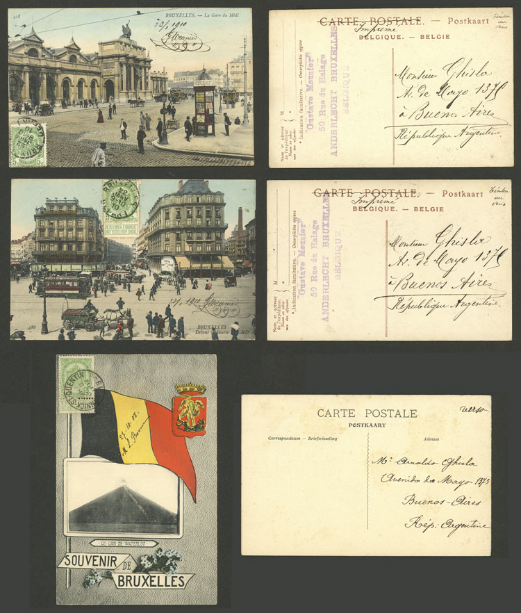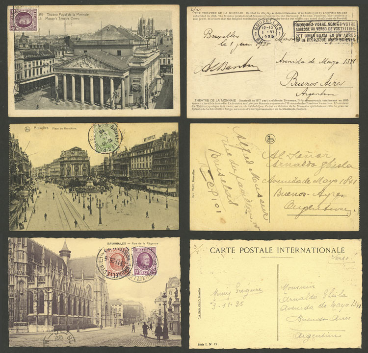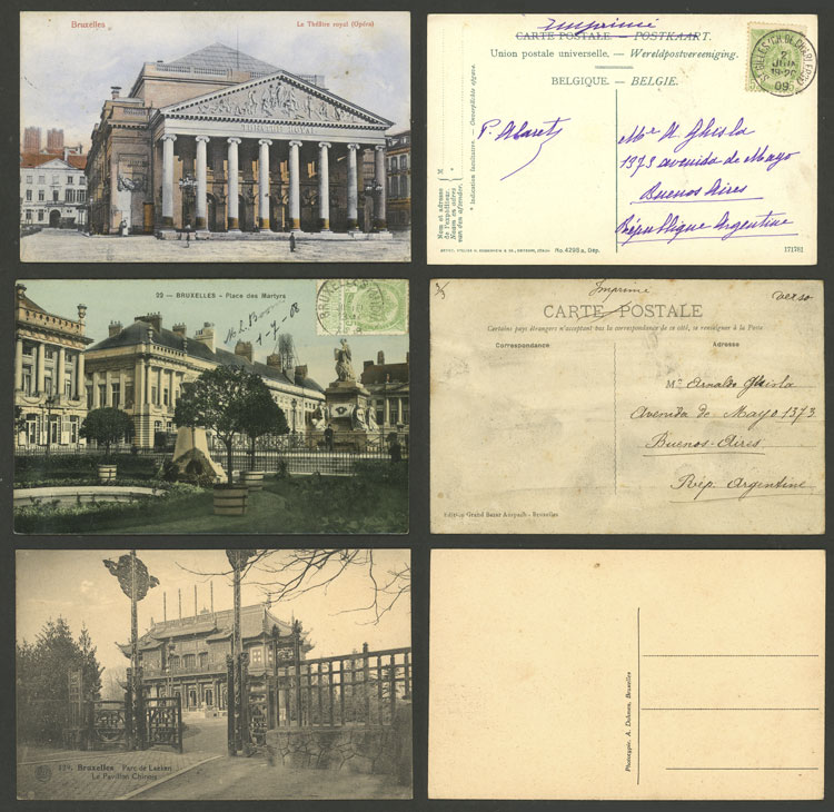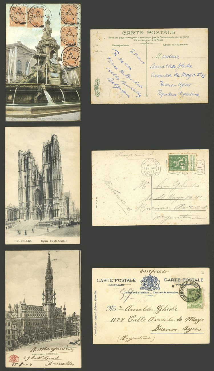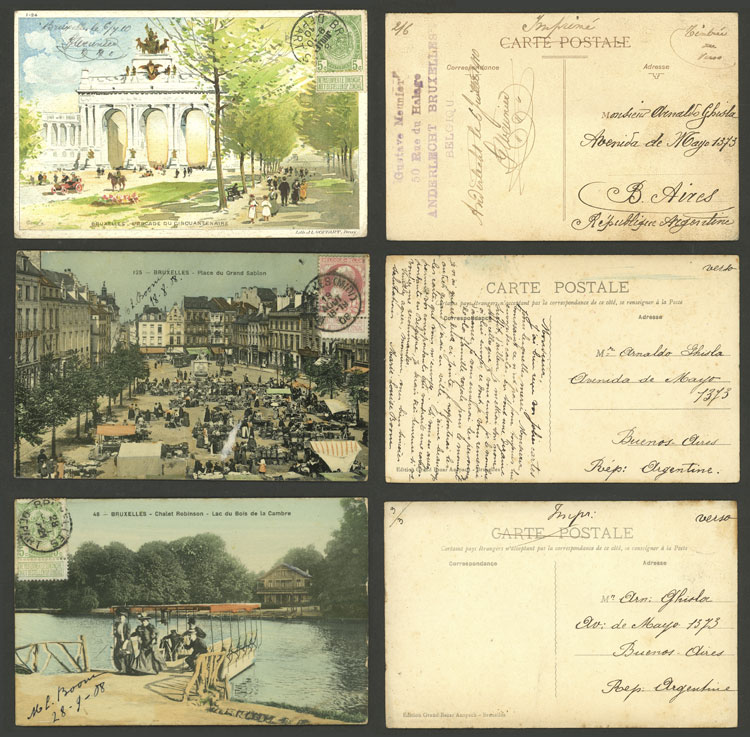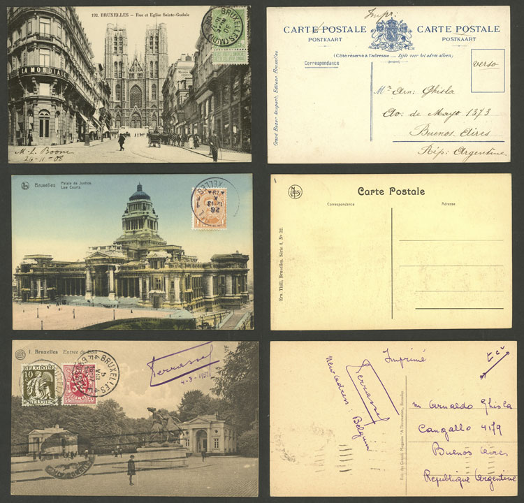 BRUXELLES: 18 Old postcards (ONE DOUBLE) with very nice views, most sent to Argentina, fine to VF general quality. ATTENTION: Please view all the photos of the lot, because all the cards have been scanned (both sides). (Image) (Image-02)