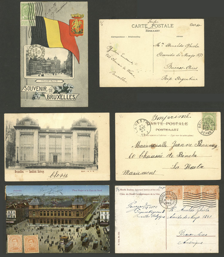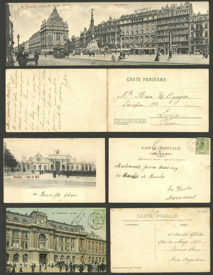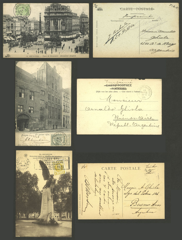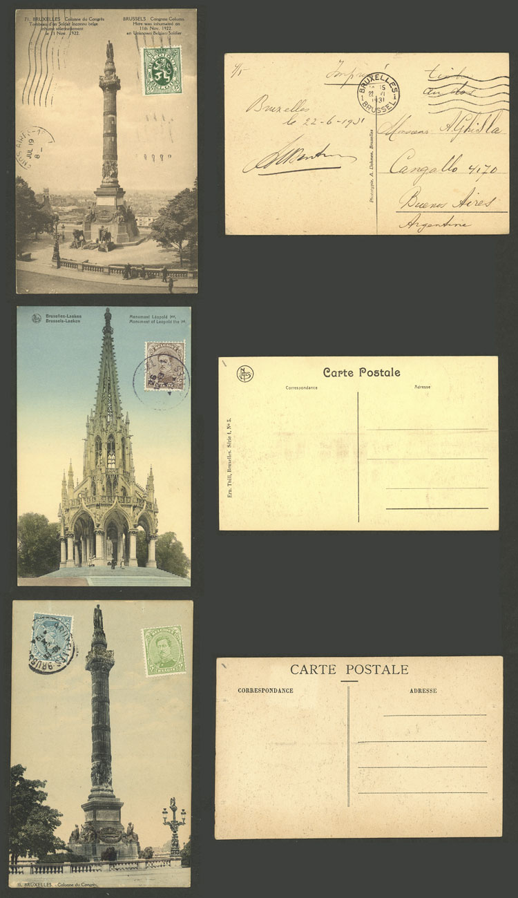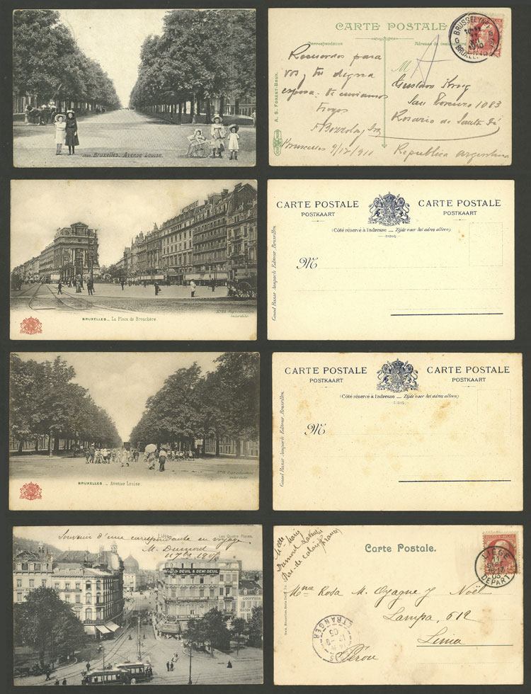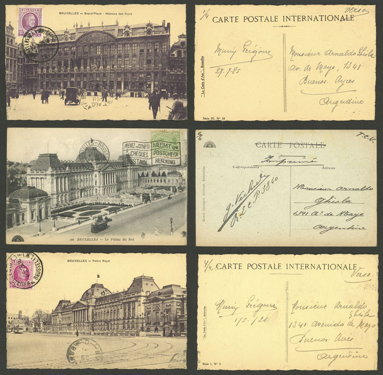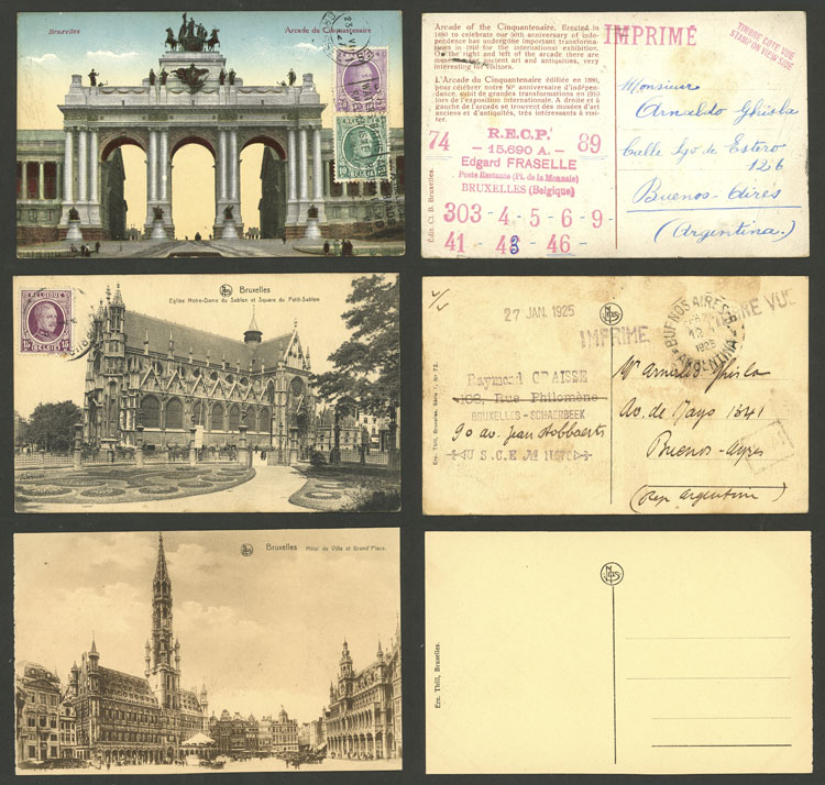 BRUXELLES: 18 Old postcards (ONE DOUBLE) with very nice views, most sent to Argentina, fine to VF general quality. ATTENTION: Please view all the photos of the lot, because all the cards have been scanned (both sides). (Image) (Image-02)