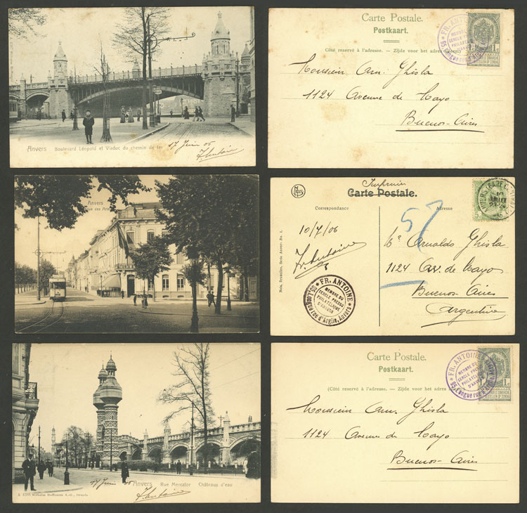ANVERS: 23 Old postcards with very nice views, most sent to Argentina, fine to VF general quality. ATTENTION: Please view all the photos of the lot, because all the cards have been scanned (both sides). (Image) (Image-02)