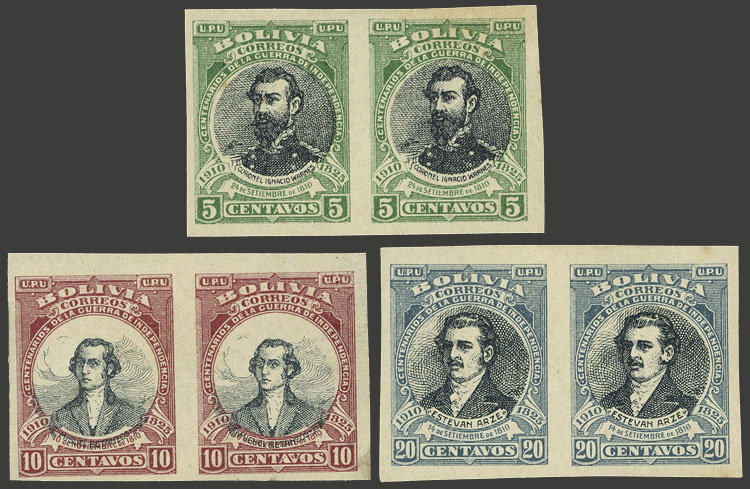 Sc.92a/94a, 1910 complete set of 3 values in IMPERFORATE PAIRS, VF quality! (Image)
