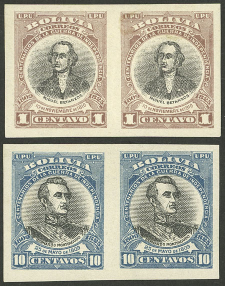 85, 1909 1c. Betanzos + 10c. Monteagudo, IMPERFORATE PAIRS, very fine quality! (Image)