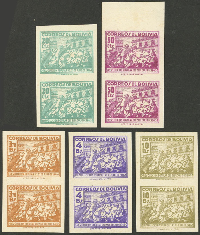 Sc.318/23 (without 320), 1947 Revolution, 5 IMPERFORATE PAIRS (without the 1.40B. value), MNH, excellent quality! (Image)