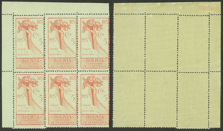 133, 1925 5c. Torch of Liberty, block of 6 with the PERFORATION COMPLETELY MISALIGNED, very attractive variety! (Image)