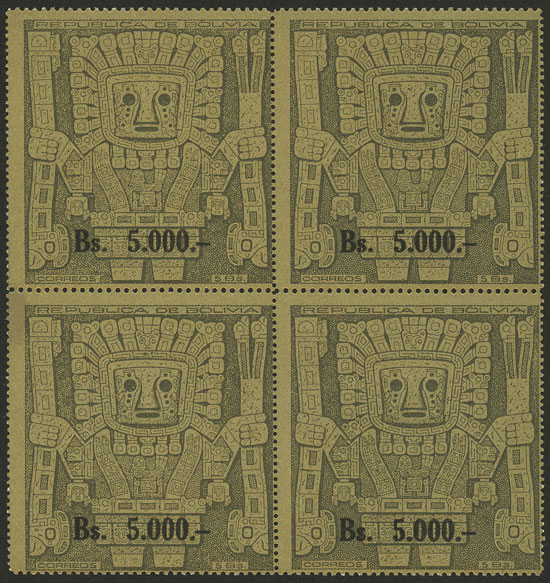 1960 Gate of the Sun 5,000Bs., beautiful MNH block of 4, excellent quality! (Image)